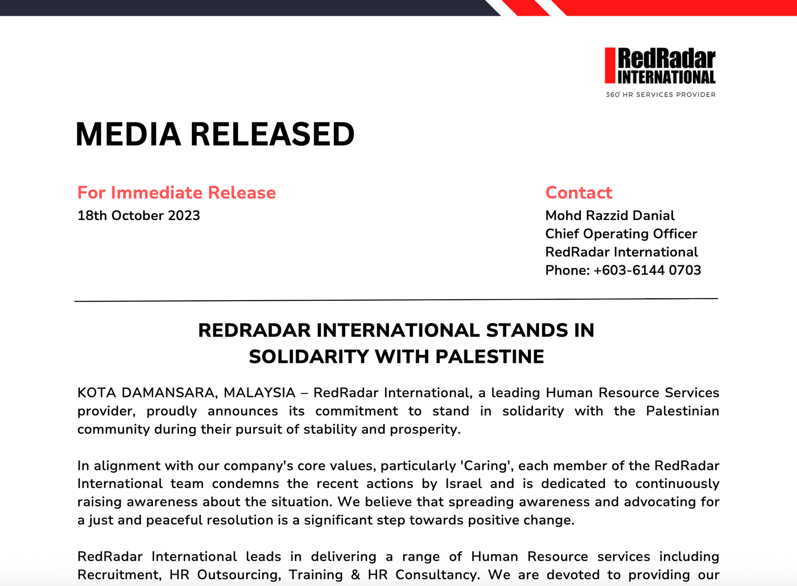 REDRADAR INTERNATIONAL STANDS WITH SOLIDARITY WITH PALESTINE