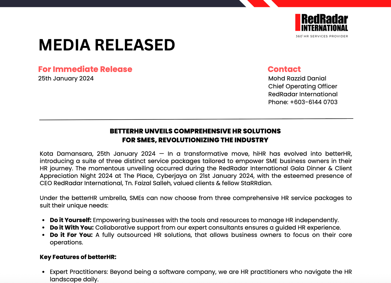 betterHR UNVEILS COMPREHENSIVE HR SOLUTIONS FOR SMES, REVOLUTIONIZING THE INDUSTRY